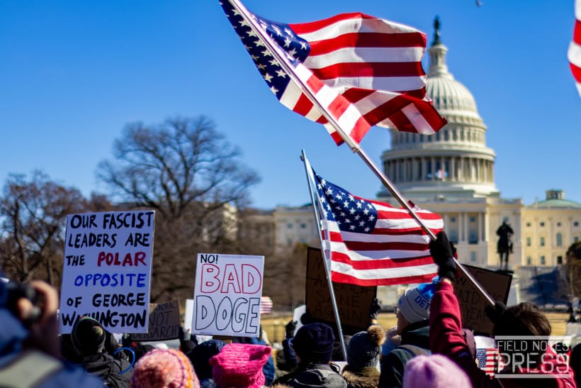 Just over a year ago on February 17, 2025, Field Notes Press’ Tom Hudson was on the National Mall for the first “No Kings” protest… An event, launched by American Opposition’s Carlos Álvarez-Aranyos, that would later grow into the largest mass protest movement in United States history.