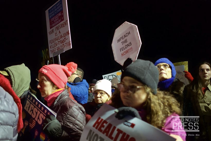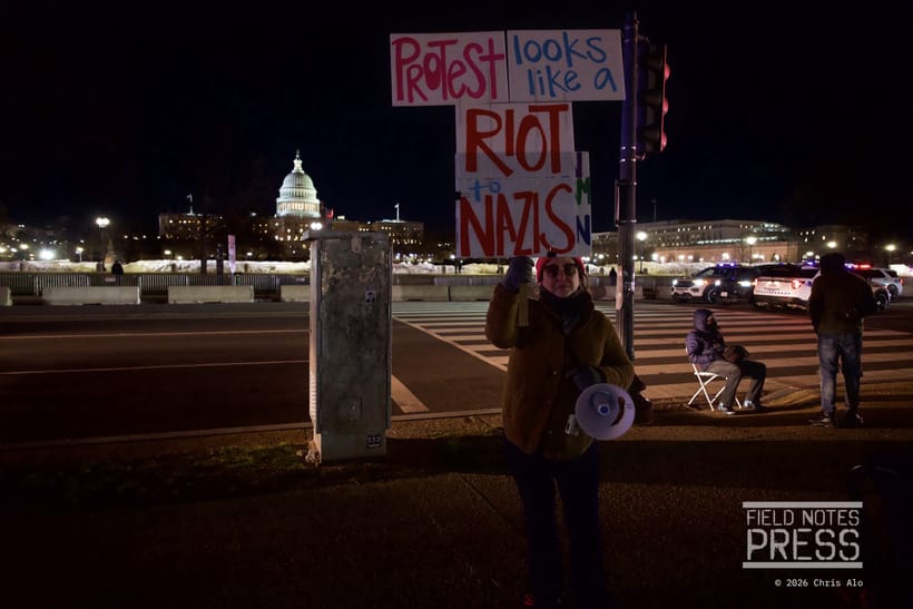 As federal law enforcement helicopters circled overhead, several members of Congress, along with activists from MoveOn and other groups held the “People’s State of the Union” on the National Mall — an event addressing a nation in crisis held simultaneously with the President’s address.